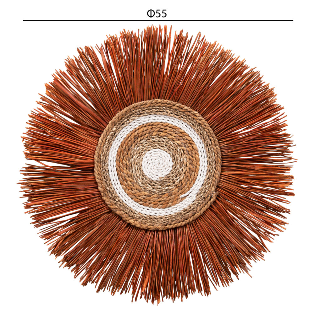 Το διακοσμητικό αυτό είναι κατασκευασμένο από κομμάτια καλαμιάς με ίνες από φλοιούς μπανάνας στο εμπρός μέρος.