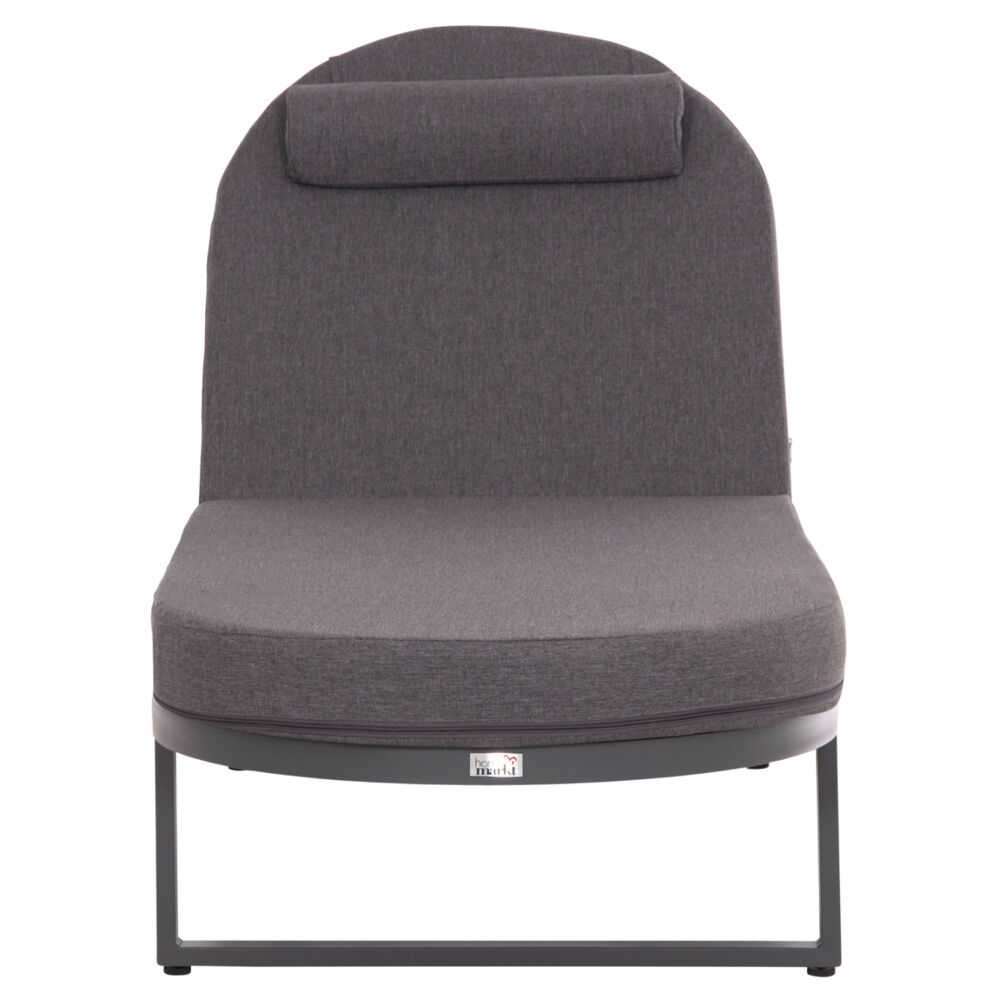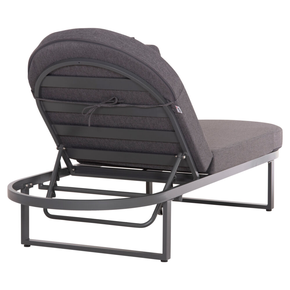 Η επαγγελματική ξαπλώστρα παραλίας FB910715.03 σε ΣΚΟΥΡΟ ΓΚΡΙ χρώμα είναι στιβαρή και πολυτελής. Είναι κατασκευασμένη από αλουμίνιο και γαλβανιζέ μέταλλο στο εσωτερικό του σκελετού για έξτρα ανθεκτικότητα, και διαθέτει ψηλό μαξιλάρι(στρώμα) με προσκέφαλο σε ΣΚΟΥΡΟ ΓΚΡΙ χρώμα. Σχεδιαστικά οι «γραμμές» της είναι ξεκάθαρες σε ΟΒΑΛ υλοποίηση. Η σκαλιέρα έχει 5 επίπεδα (μαζί με την flat).