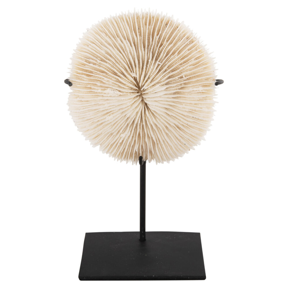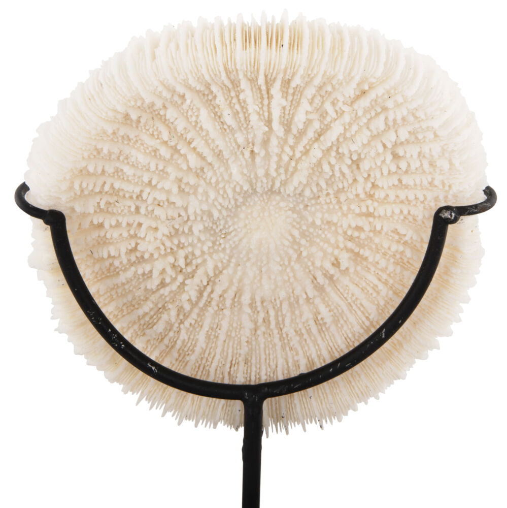 Το επιτραπέζιο διακοσμητικό FB94273 θα προκαλέσει συζητήσεις. Πρόκειται για ένα κομμάτι από φυσικό κοράλλι σε ΦΥΣΙΚΟ χρώμα, τοποθετημένο σε ΜΑΥΡΟ μεταλλικό stand. Το κοράλλι είναι από τα αρχαιότερα υλικά πολύτιμων λίθων, που χρησιμοποιείται για στολισμό από την προϊστορική εποχή. Το κοράλλι είναι ένα οργανικό πετράδι από ανθρακικό ασβέστιο με ίχνος καροτίνης, που εναποτίθεται από μικροσκοπικά θαλάσσια πλάσματα που ζουν στα βάθη των ζεστών θαλασσών σε τεράστιες αποικίες. Αναπτύσσονται σε κλαδιά που μοιάζουν με υποβρύχια δέντρα, αλλά στην πραγματικότητα είναι ζωντανοί οργανισμοί.