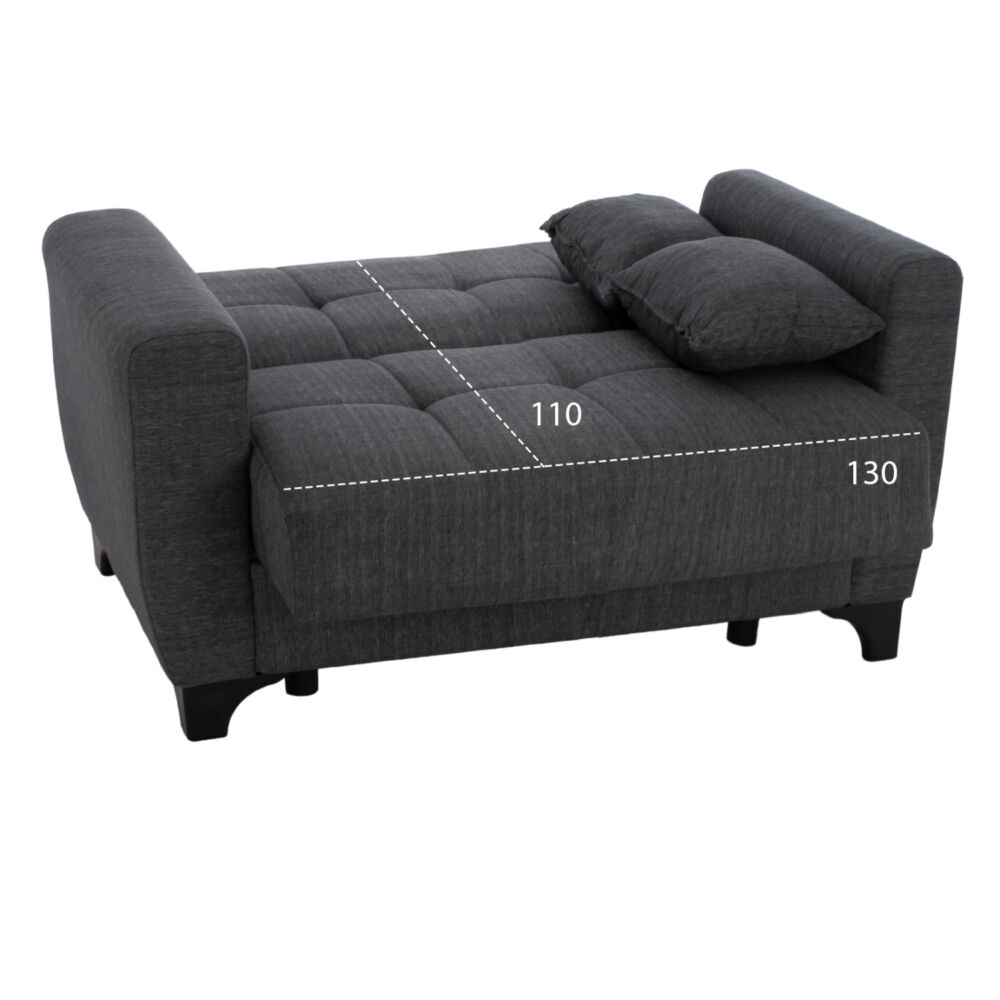 Το κύριο χαρακτηριστικό του καναπέ, όμως, είναι ότι πέφτει η αναπαυτικά ψηλή πλάτη και μετατρέπεται σε ένα μεγάλο κρεβάτι χάρη στην ψηλή πλάτη, με έναν εύχρηστο μηχανισμό «κλικ-κλακ». Και για να μην υπάρξει ποτέ κανένα πρόβλημα με τον καναπέ, υπάρχουν επιπλέον πόδια που χρησιμεύουν όταν ο καναπές γίνεται κρεβάτι! Συνέπεια αυτού, βέβαια, είναι και η ύπαρξη αποθηκευτικού χώρου κάτω από το κάθισμα του καναπέ, ο οποίος πάντα είναι χρήσιμος, ειδικά σε φοιτητικά σπίτια. Τέλος, τα πόδια του καναπέ σε μαύρο χρώμα, είναι ψηλά επιτρέποντας το εύκολο καθάρισμα χωρίς να χρειαστεί να μετακινηθεί ολόκληρος ο καναπές.