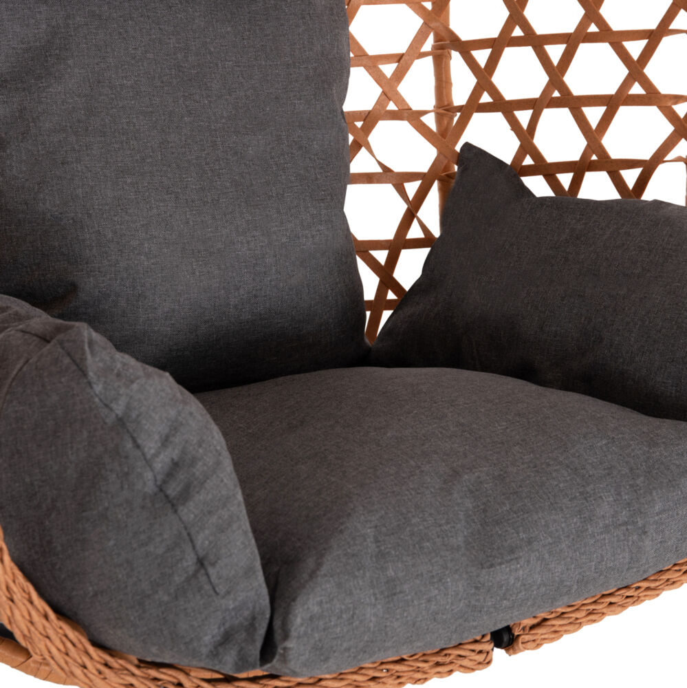 Ο εργονομικός σχεδιασμός της φωλιάς σε συνδυασμό με τα μαξιλάρια από πολυεστερικό γκρι ύφασμα και γέμιση PP προσφέρουν υψηλό επίπεδο άνεσης και χαλάρωσης. Η FB96468.05 είναι ιδανική για βεράντα, κήπο, μπαλκόνι αλλά και για εσωτερικούς χώρους που θέλουν να ξεχωρίζουν.