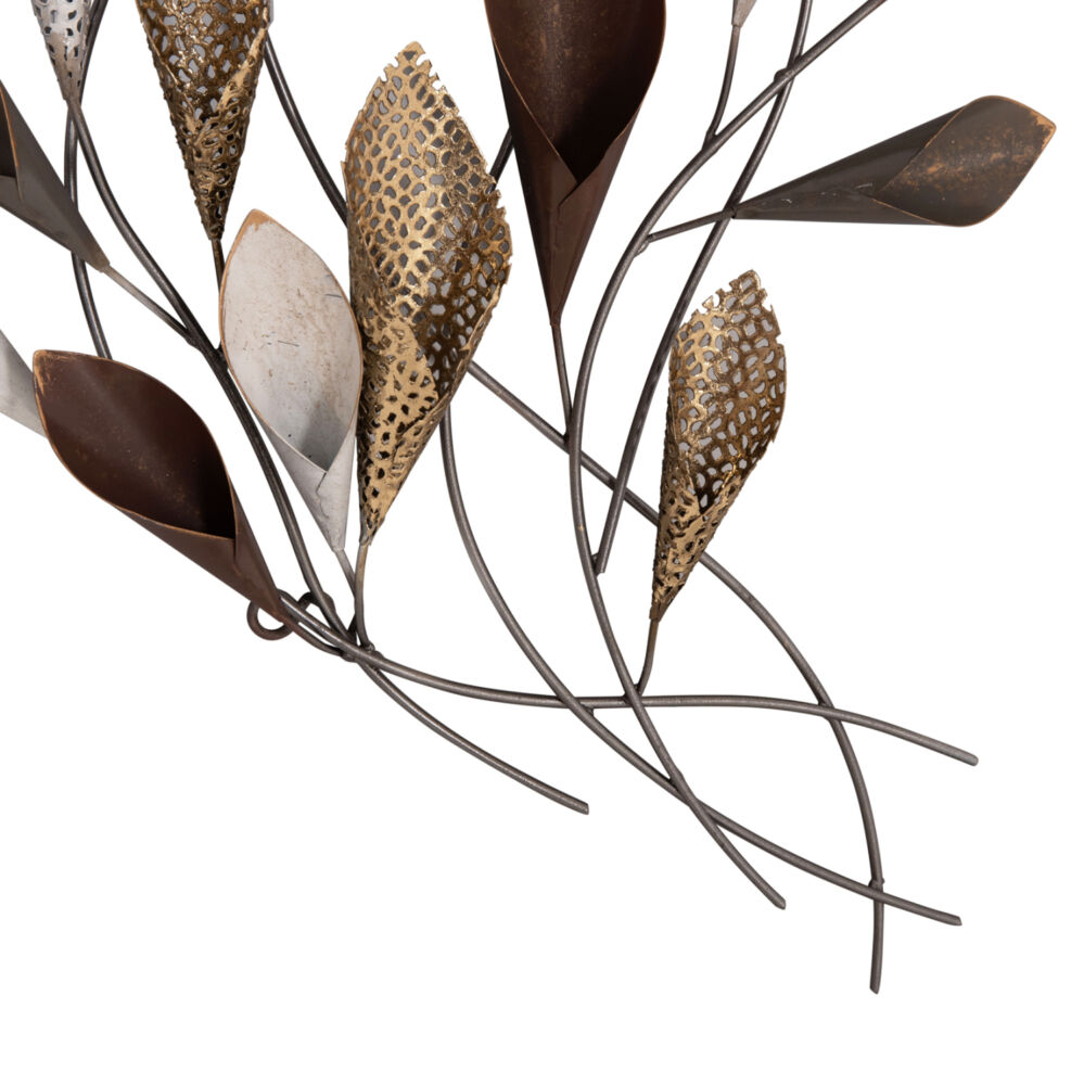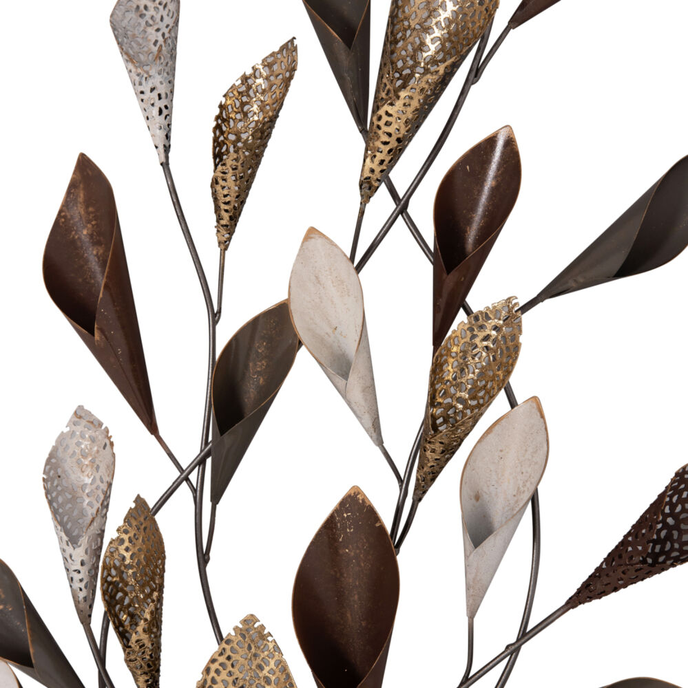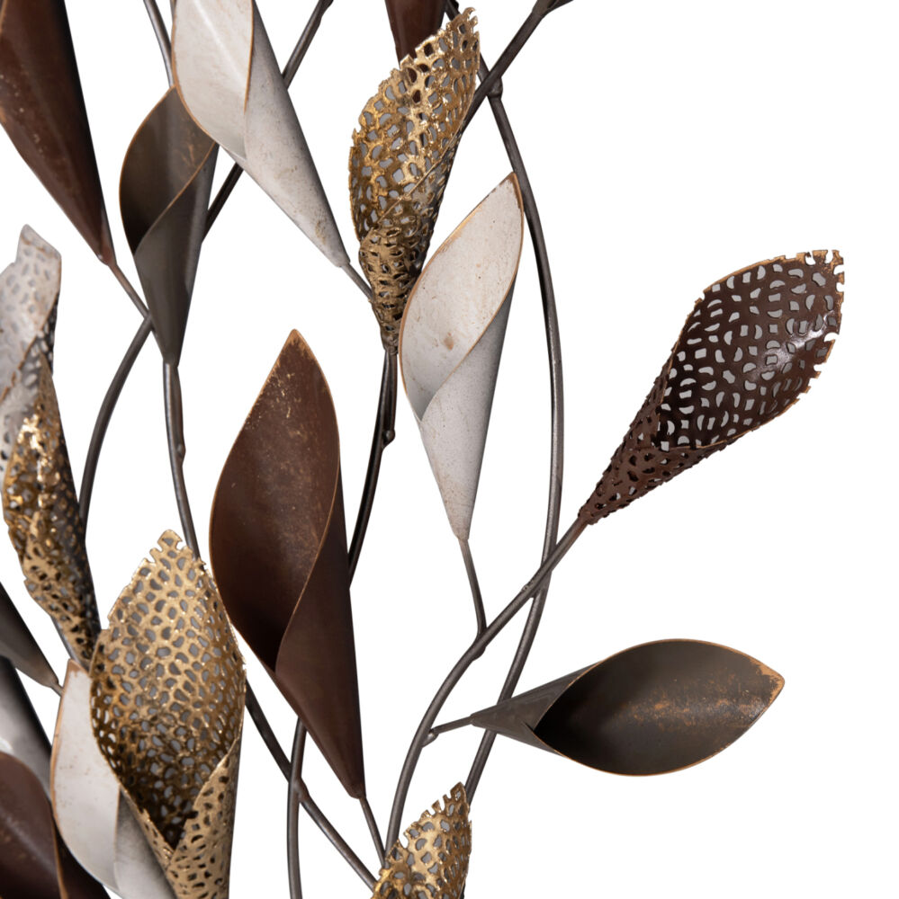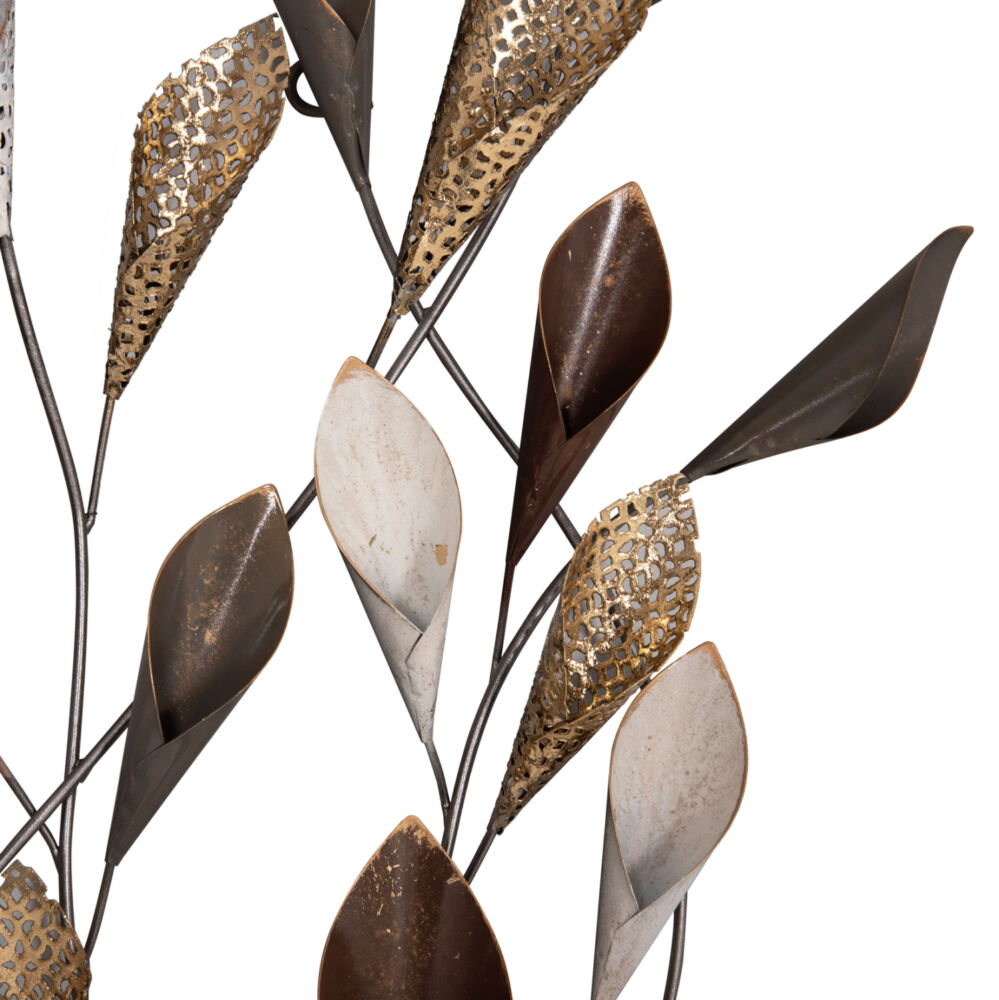 Μεταλλικό διακοσμητικό τοίχου σε ανθρακί και λευκή απόχρωση με χρυσές και μπορντώ λεπτομέρειες.