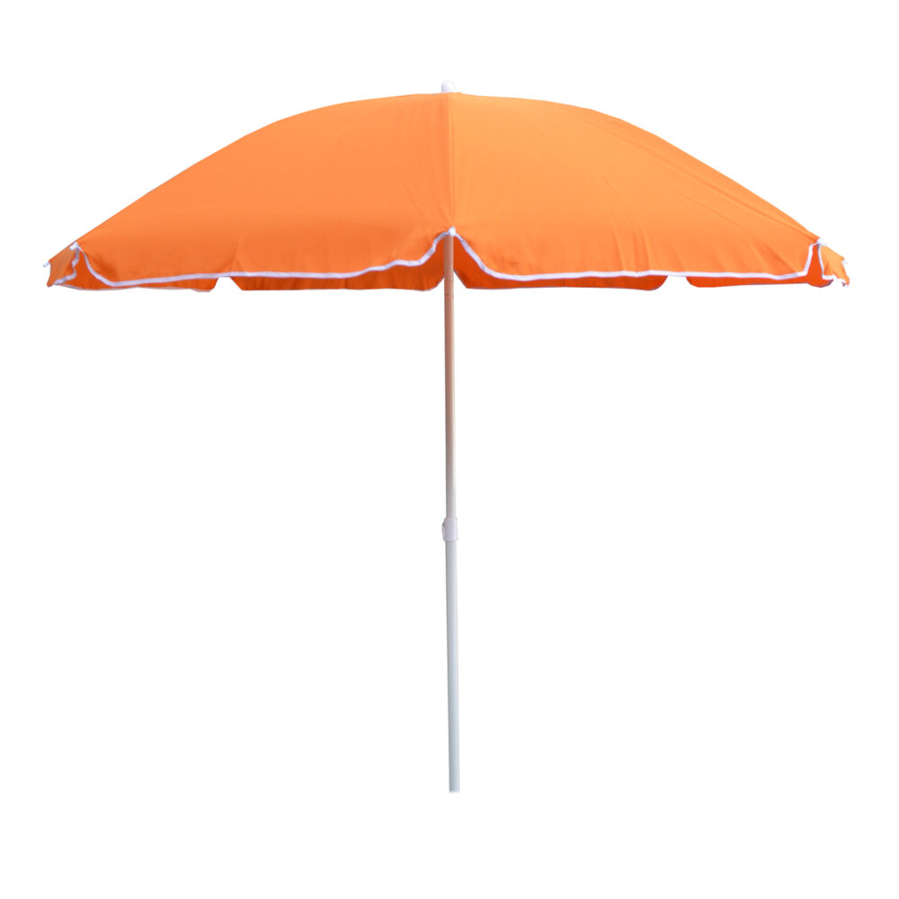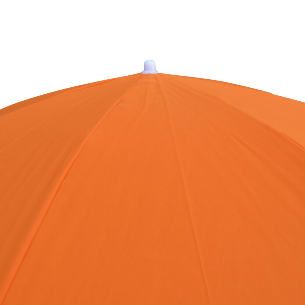 Ομπρέλα θαλάσσης στρογγυλή με ανάκληση και flaps, σε πορτοκαλί απόχρωση με διάμετρο 2.20 μέτρα και διαιρούμενο σωλήνα Φ25/22mm, με 8 ακτίνες Fiberglass πάχους 5mm. Ύφασμα 180 γραμμάρια.