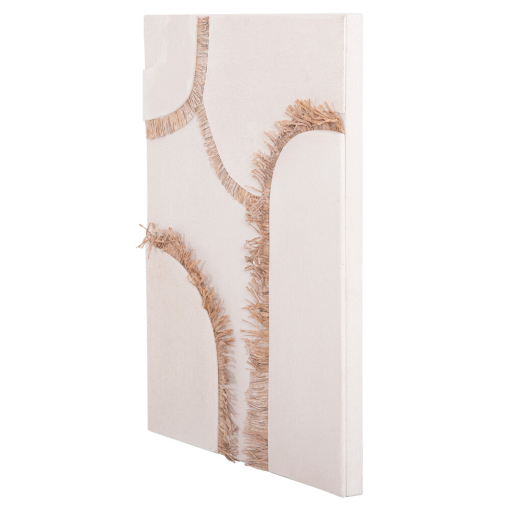 Διακοσμήστε τον χώρο σας με έναν όμορφο πίνακα σε μίνιμαλ υλοποίηση όπως ο FB94532! Αυτός ο ορθογώνιος χειροποίητος πίνακας είναι κατασκευασμένος από MDF με υφή σαγρέ τσιμέντου, που αποτελεί την πιο σύγχρονη τάση στον τομέα του interior design, σε ΥΠΟΛΕΥΚΟ χρώμα, με αφηρημένο σχέδιο, «σκαλισμένο» με ανάγλυφο τρόπο στην επιφάνεια του πίνακα και διακοσμημένο με ακρυλικά «κρόσια» σε ΜΠΕΖ χρώμα. Ιδανικός για μια “νησιωτικού” στυλ διακόσμηση!