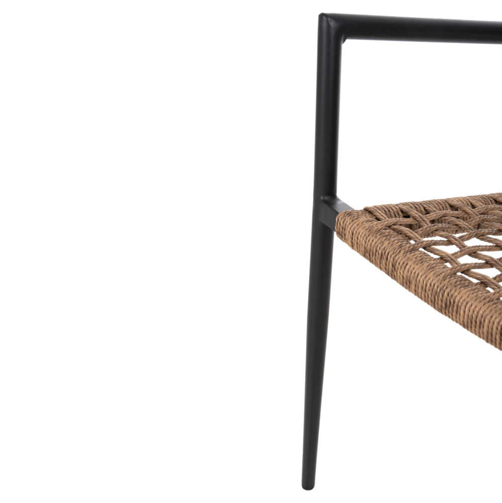 Η πολυθρόνα είναι επενδυμένη με πολυεστερικό RATTAN σε «τυλιχτή» μορφή (twisted) που μοιάζει με σχοινί.