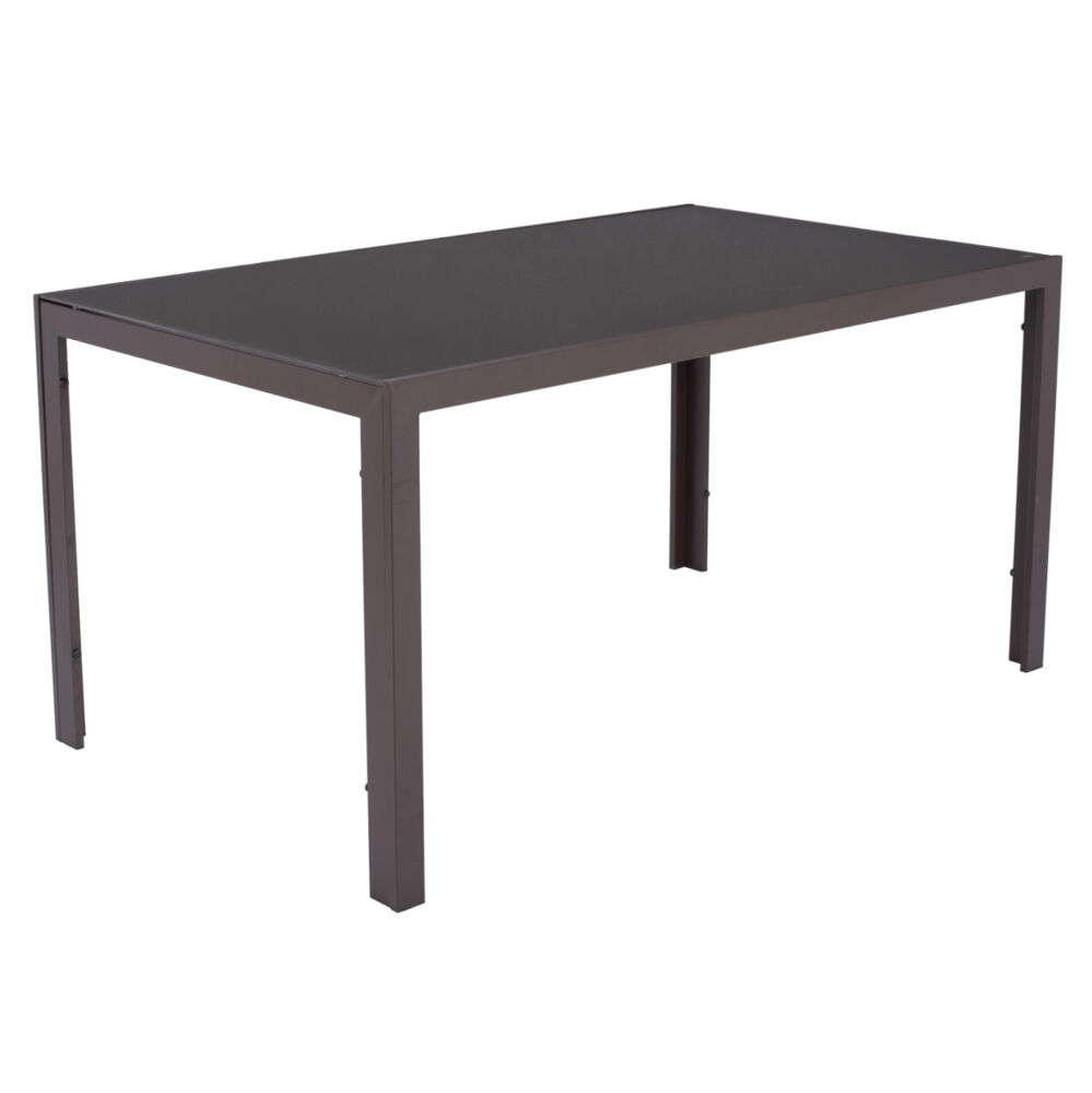Το Σετ τραπεζαρίας εξωτερικού χώρου FB921009 αποτελείται από ένα τραπέζι με καφέ μεταλλικό σκελετό και γυάλινη ΕΝΙΣΧΥΜΕΝΗ επιφάνεια, kai 4 πολυθρόνες μεταλλικές με textilene σε καφέ χρώμα.