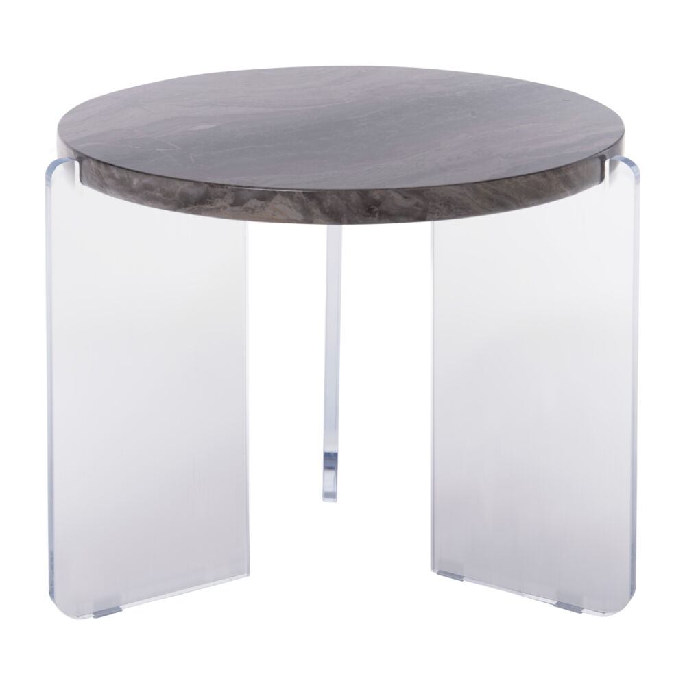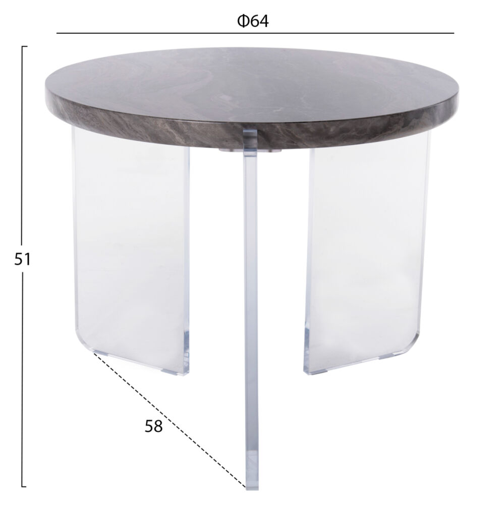 Το FB99780.01 είναι ένα στρογγυλό τραπεζάκι για το σαλόνι σε χρωματισμό γκριζωπής STONE TEXTURE. Αυτός ο χρωματισμός έχει γίνει με διπλή «ζωγραφιστή» επίστρωση, ενώ η επιφάνεια είναι υδατοαπωθητική αναδεικνύοντας την μοναδικότητα αυτού του τραπεζιού. Τέλος, αυτή η όμορφη ελαφρώς φαλτσοκομμένη επιφάνεια στηρίζεται(βιδώνεται) σε 3 διάφανα ΑΚΡΥΛΙΚΑ πόδια που προεξέχουν από την περίμετρο. Αυτό το τραπέζι θα αναβαθμίσει αισθητικά το σαλόνι σας ενώ μπορεί να ταιριάξει με πολλά διαφορετικά στυλ και χρώματα στον τριγύρω χώρο.