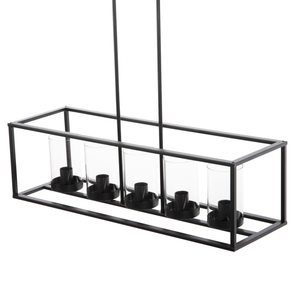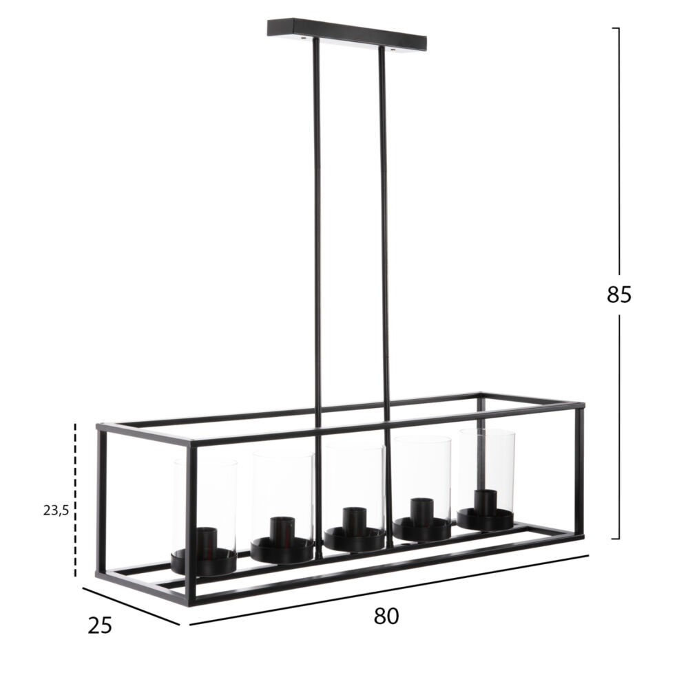 Το FB94082 είναι μια από τις νέες προσθήκες στην γκάμα μας και είναι εντυπωσιακό. Τα 5 φώτα του σε σειρά βρίσκονται σε γυάλινες θήκες σαν ποτήρια. Αυτές οι θήκες είναι τοποθετημένες σε μια ΜΑΥΡΗ ορθογώνια μεταλλική κατασκευή σαν προθήκη, η οποία κρέμεται από την οροφή με 2 μεταλλικές ράβδους. Πρόκειται για ένα εντυπωσιακό φωτιστικό που θα προκαλέσει τον θαυμασμό όλων!