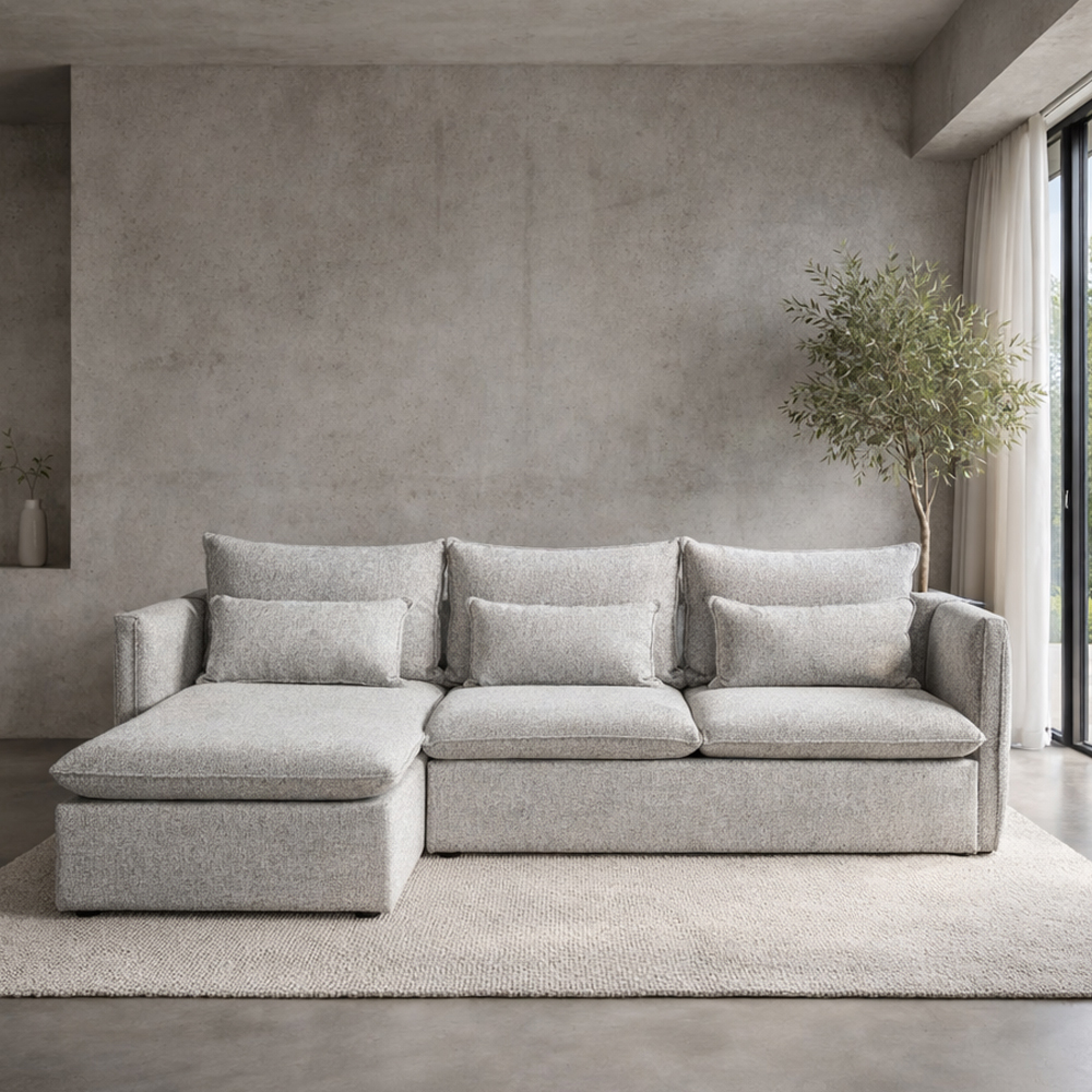 Ο αριστερός γωνιακός καναπές PROUD προσφέρει άνεση και design για κάθε καθιστικό. Με διαστάσεις 258x180x90 εκ., ανοιχτό γκρι ύφασμα chenille και υποστηρίζεται από σκελετό από ξύλο πεύκου, εξασφαλίζοντας σταθερότητα και αντοχή.