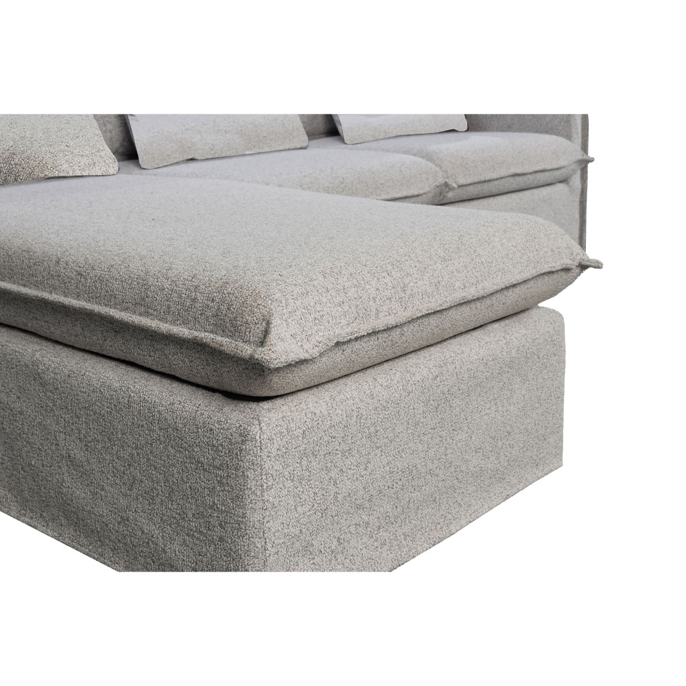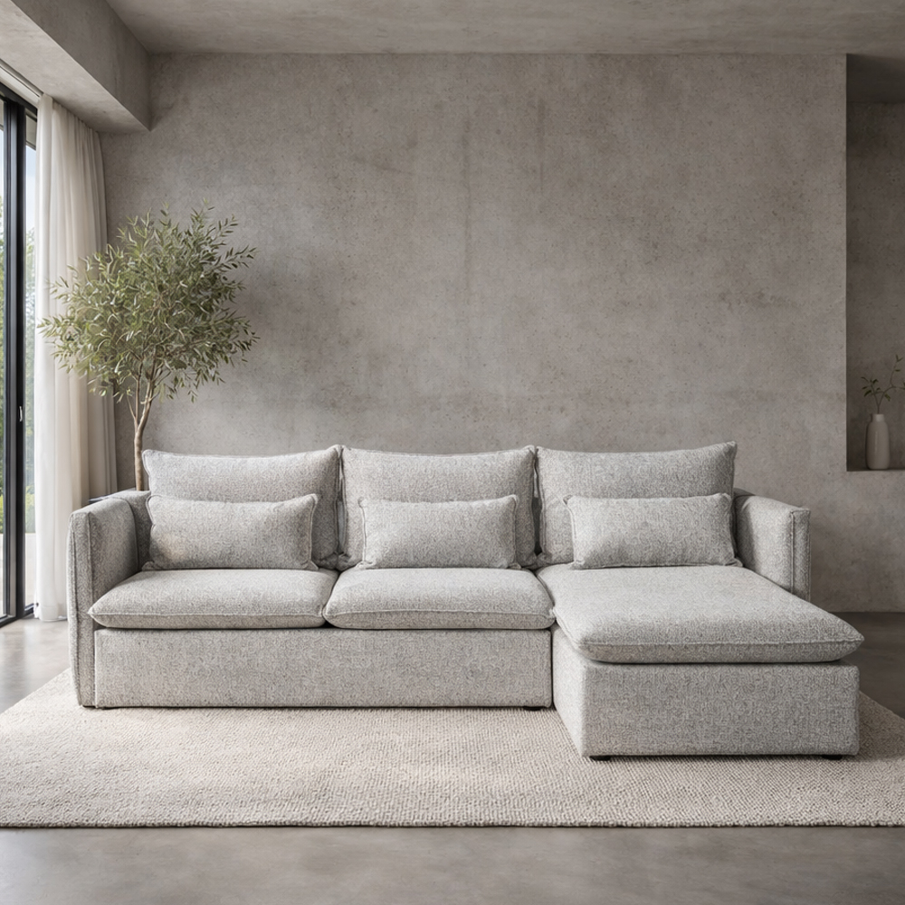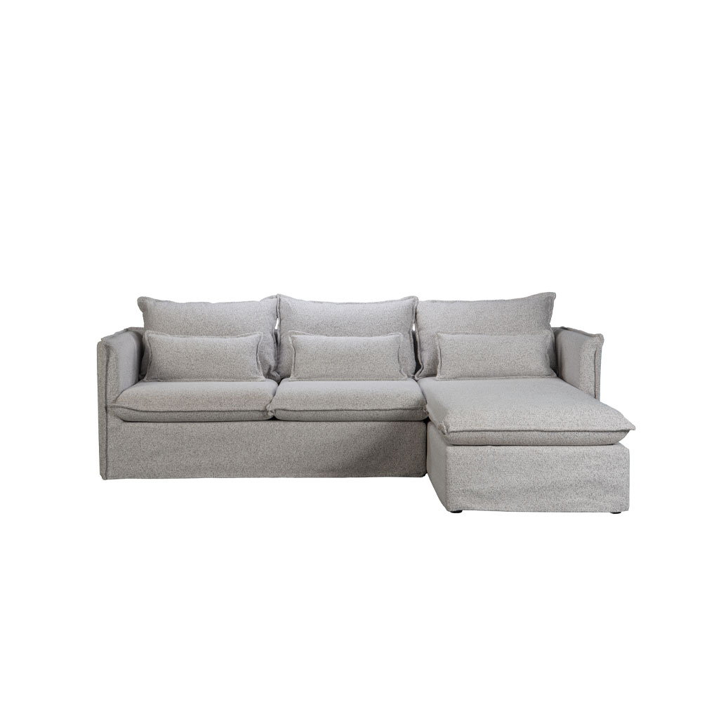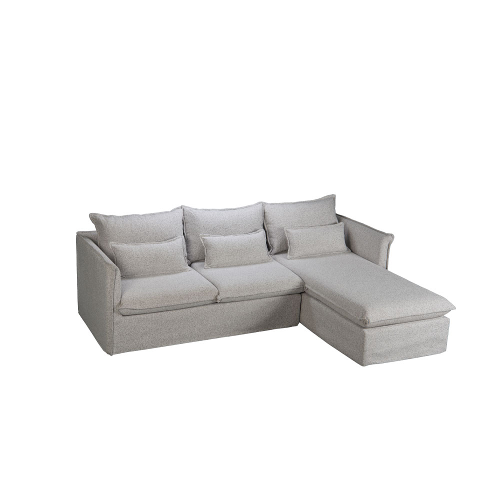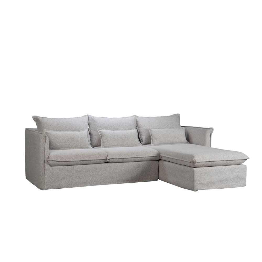 Ο δεξιός γωνιακός καναπές PROUD αποτελεί ιδανική επιλογή για άνεση και στυλ στο καθιστικό. Με ύφασμα chenille σε ανοιχτό γκρι χρώμα και διαστάσεις 258x180x90 εκ.. Ο σκελετός είναι κατασκευασμένος από ξύλο πεύκου, εξασφαλίζοντας σταθερότητα και αντοχή.