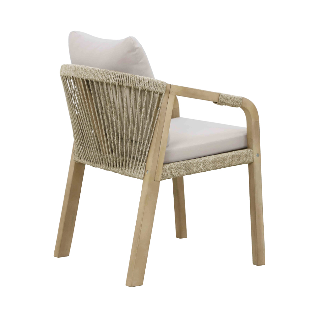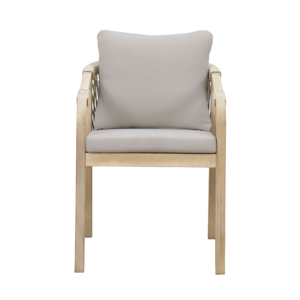 σε απαλή μπεζ απόχρωση, αποπνέει μια αίσθηση ζεστασιάς και άνεσης. Η στιβαρή βάση της, κατασκευασμένη από ξύλο ακακίας σε ανοιχτόχρωμη απόχρωση ξύλου teak, προσδίδει διαχρονική ανθεκτικότητα και μια φυσική αισθητική που ταιριάζει σε κάθε στυλ διακόσμησης. Ιδανική για εσωτερικούς ή εξωτερικούς χώρους, η καρέκλα Terrazzo αποτελεί την τέλεια επιλογή για όσους αναζητούν έναν διακριτικό συνδυασμό λειτουργικότητας και κομψότητας.